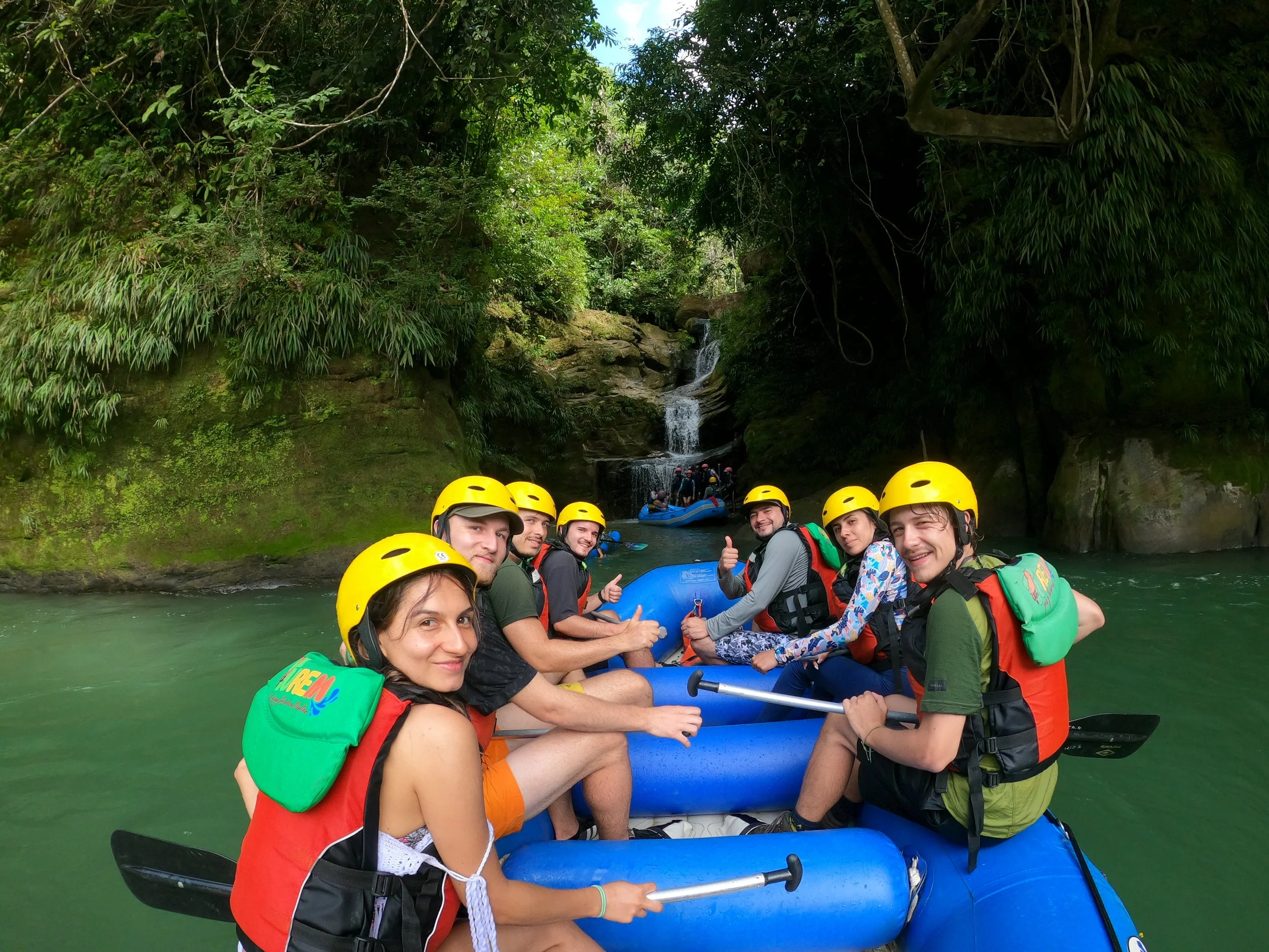 Als wir an der Halle von “Tourem”, dem Veranstalter, ankamen, zahlten wir schnell, rüsteten uns aus und fuhren zum Fluss. Auf dem Weg lernten wir Jannick, seine kolumbianische Freundin und einen weiteren deutschen Kumpel kennen. Sie haben sich eine Finca in der Kaffeeregion Kolumbiens gekauft und vertreiben hier inzwischen ihren eigenen Kaffee und vermieten Zimmer in ihrer Finca. Dass das mehr oder Weniger meinem Traum entspricht, klatschte relativ kurz nach der Trennung von Gabriela richtig rein. In einem anderen Zeitstrang hätte ich das sein können, so fühlte es sich an.